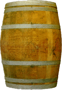 Barrica lijada, barnizada con aros grapados y pintados. |